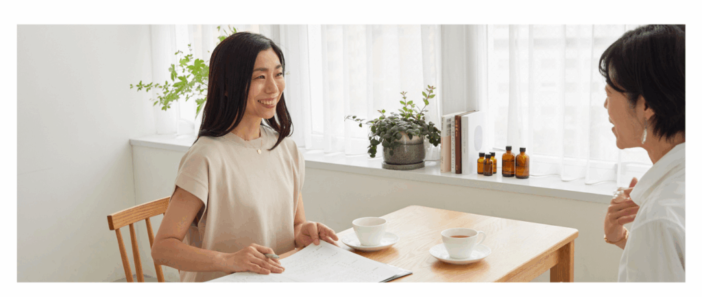 メンタルケアメソッドを学んで、はじめの頃は施術前後のカウンセリングやアフタードリンクの時間に、お話しを聞いたりしていました。